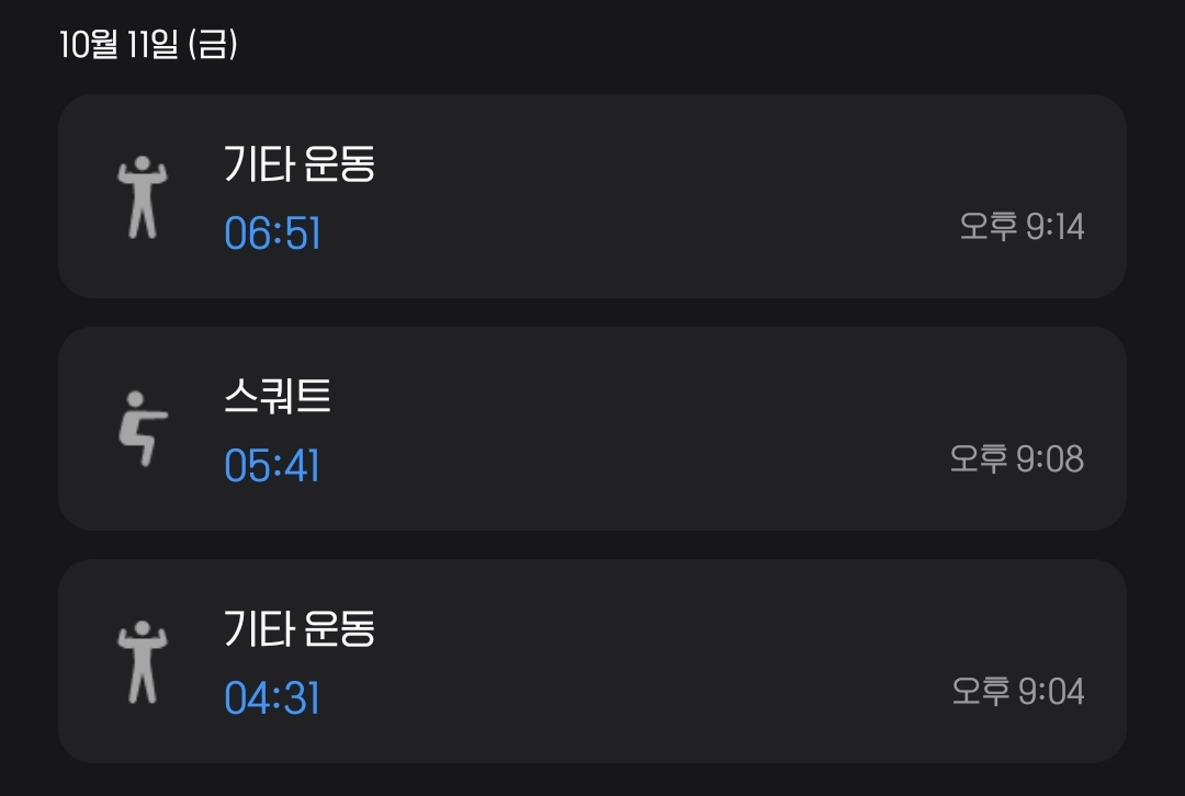 시간이 늦어 스트레칭을 건너뛰고 스쿼트만 했다.